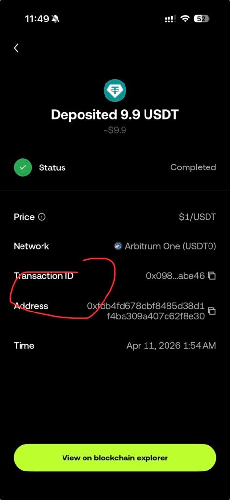 3. Click on the specific transfer and look for a long string of letters and numbers called the TXID or Transaction Hash.